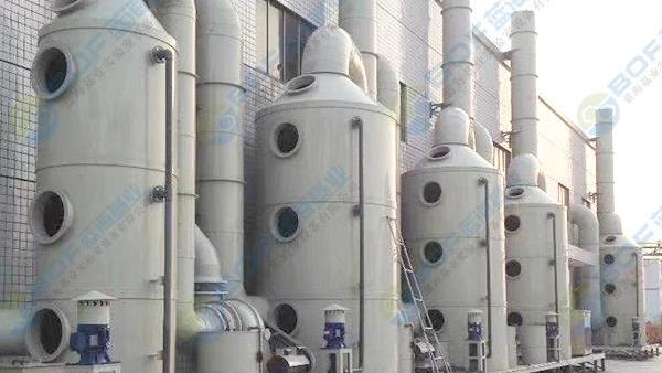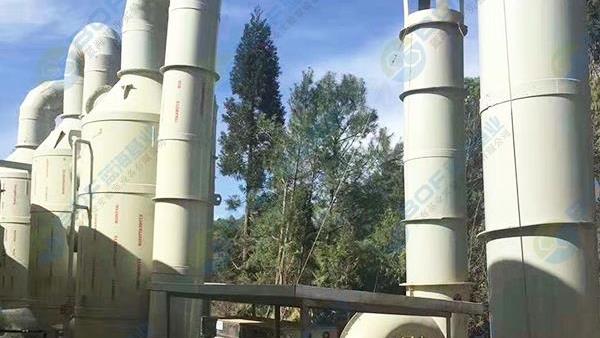 水噴淋塔凈化塔,風(fēng)機(jī)帶動(dòng)化學(xué)酸霧通過水噴淋裝置,遇到噴灑成細(xì)零的中和液體,廢氣被吸收到細(xì)小液滴的表面而排到收集槽內(nèi),潔凈的空氣進(jìn)一步過濾除霧后排放到大氣中,液體通過泵從收集槽收到上部的噴嘴噴出,與廢氣發(fā)生中和反應(yīng)后排到收集槽內(nèi),廢液處理后排放到外界或循環(huán)使用。